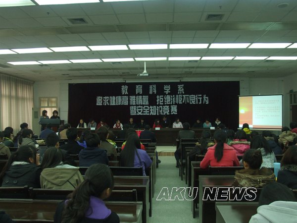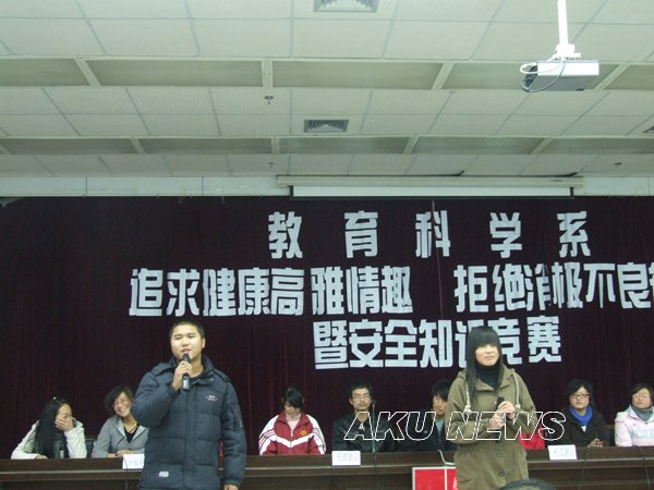 教育科学系积极响应学院开展“追求健康高雅情趣 拒绝消极不良行”专题教育活动的号召,迅速行动,经过精心筹划,12月3日下午,教育科学系在我院图书馆六楼报告厅举行了“追求健康高雅情趣 拒绝消极不良行为暨安全知识竞赛”活动。