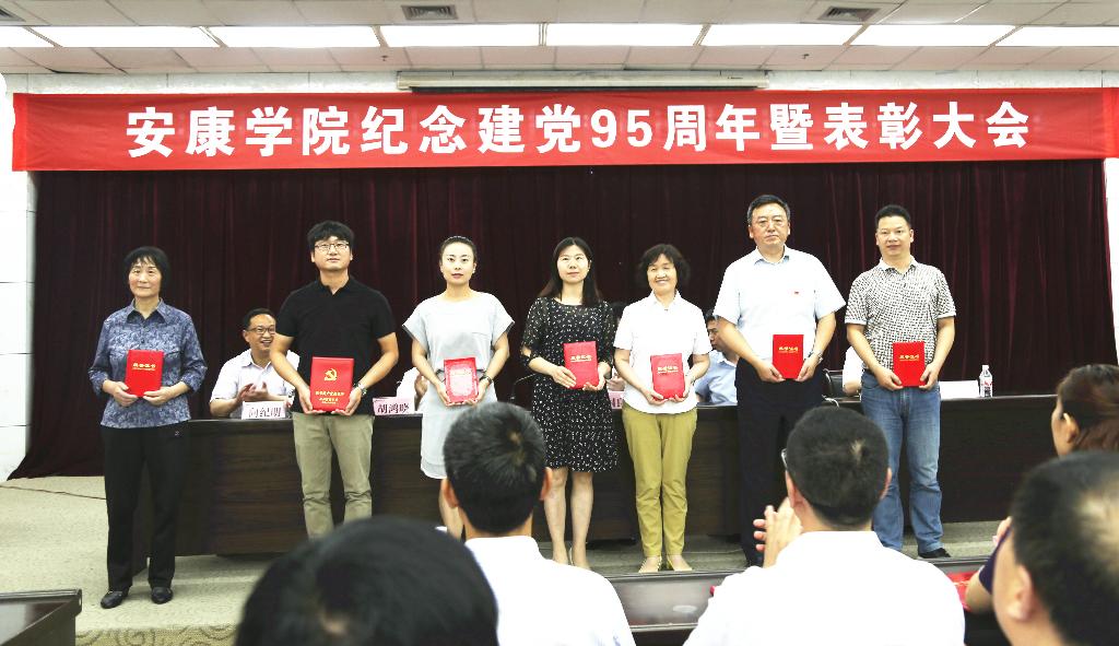 党委副书记胡鸿晓宣读了中共陕西省委高教工委《关于表彰全省高校优秀共产党员、优秀党务工作者和先进基层党组织的决定》和中共安康市委《关于表彰全市优秀共产党员、优秀党务工作者和先进基层党组织的决定》,党委副书记、纪委书记闵小平宣读了我校《关于表彰先进基层党组织、优秀共产党员、优秀党务工作者的决定》。