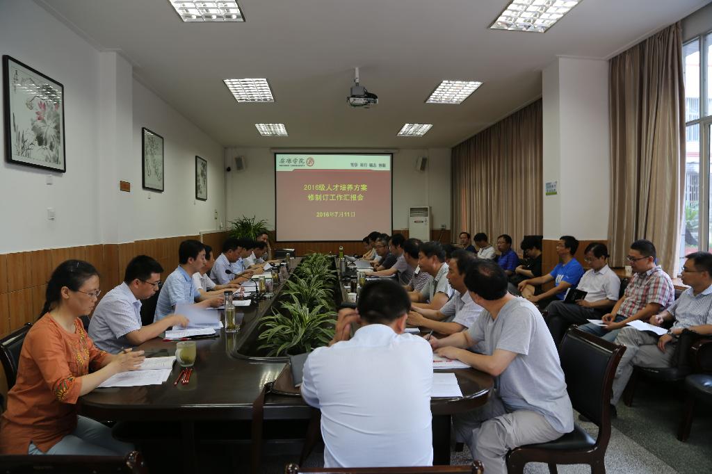 7月11日上午,我校在江南校区第一会议室召开了2016级人才培养方案修制订工作汇报会。学校专业综合改革指导小组成员,校长陈刚、教务处处长钟生海、人事处处长王军、科技处处长刘强、办学顾问熊正英教授,以及各二级学院院长、教学副院长等参加了会议。会议由钟生海主持。