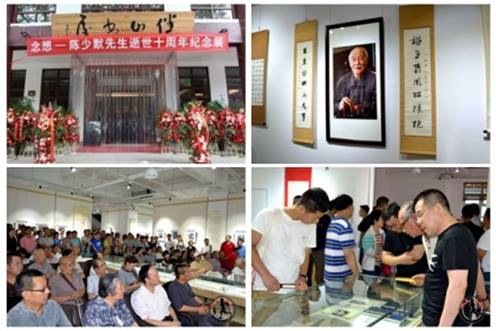此次展览主要以陈少默生平影像资料为主,共展出先生历年照片60余幅,同时展出的还有先生的行书、隶书作品以及先生生前使用过的笔、砚、印和关于先生的著述数十种。展览的形式和内容别开生面,充分展示了先生不凡的一生和高超的艺术造诣。