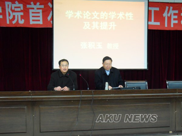 14日上午,张教授与我院学报各位编委进行了座谈。座谈会上,向纪明副院长介绍了学院的基本情况及学报建设发展的基本情况;与会人员畅所欲言,就学报的建设和发展各抒己见。张教授认为,安康学院作为新建本科院校发展很快,学院人呈现出一种积极向上,团结奋进的精神风貌,值得赞扬和学习。学院学报基础较好,学院领导很重视学报工作,支持力度大,办刊规范、严谨,质量较高,在同类的学术期刊中居于前列。张教授还对学报的建设提出了具体的意见和建议,对学报的发展具有较高的指导意义。下午,张教授为我院师生做了题为“学术论文的学术性及其提升”的学术报告会,用简明的语言和大量的事实例证讲解了学术论文学术性的内涵、特征及提升途径,既有很高的理论性又有很强的实践操作性,赢得了广大师生的一致好评。