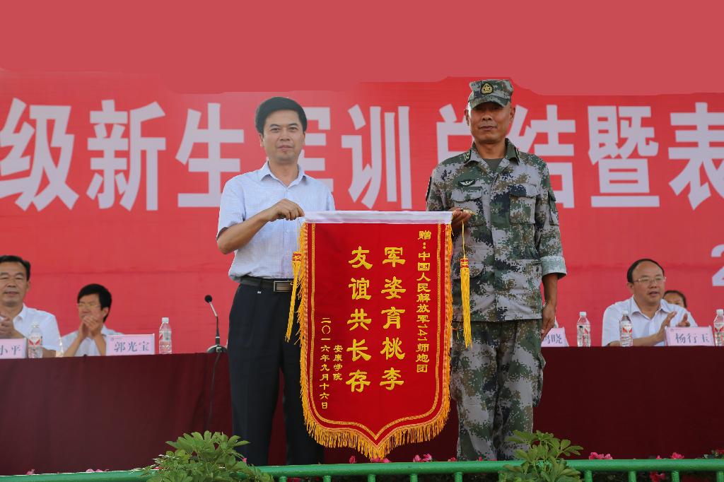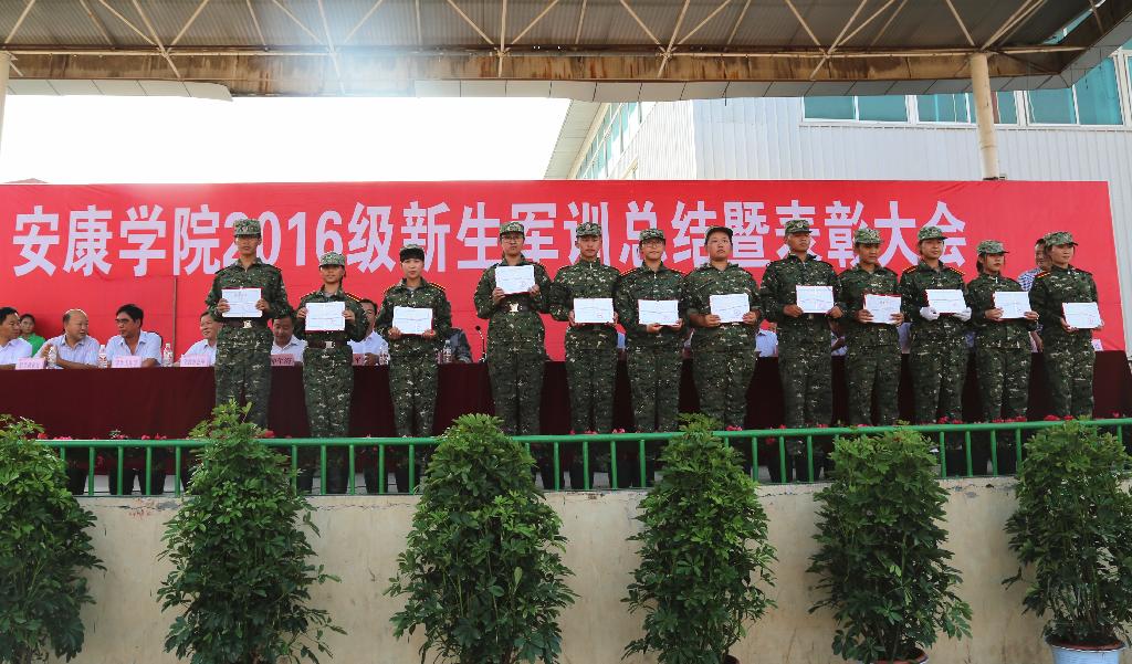 秋风初至、艳阳未却,9月16日下午2:30,安康学院2016级学生军训总结表彰大会在江南校区体育场隆重举行。2300余名新生经过为期两周的意志与纪律的考验,体力与毅力的锤炼,顺利完成了军事训练任务,以飒爽的军姿、整齐的队列、饱满的精神为开学第一课交上了一份合格的答卷。