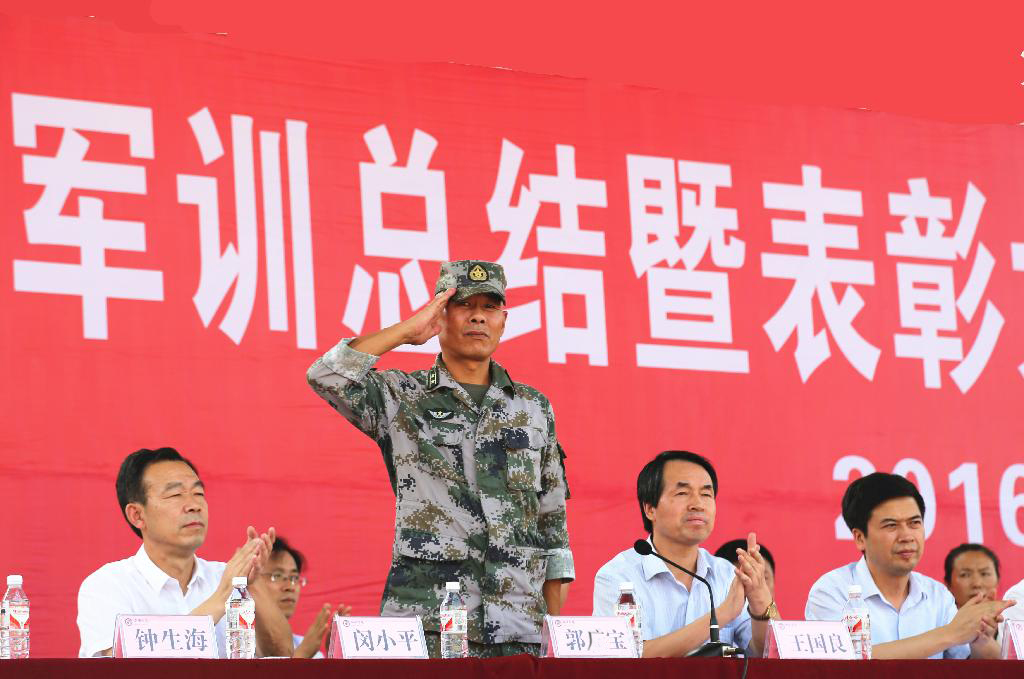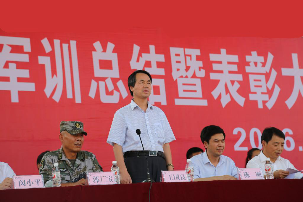 郭广宝代表军训团祝贺本次军训取得圆满成功,他肯定和高度赞扬了我校2016级学生在军训中的优异表现,并就巩固和深化军训成果等方面提出了期望和要求。希望受训学生在今后的学习与生活中,继续发扬军训中磨砺出的好精神、好作风,把军训成果转化为刻苦学习、刻苦钻研的精神支撑,转化为尊重师长、谦虚谨慎的优良品质,转化为顽强拼搏、开拓进取的实践动力,争取更好的成绩和荣誉,努力把自己培养成为德智体全面发展的合格人才。