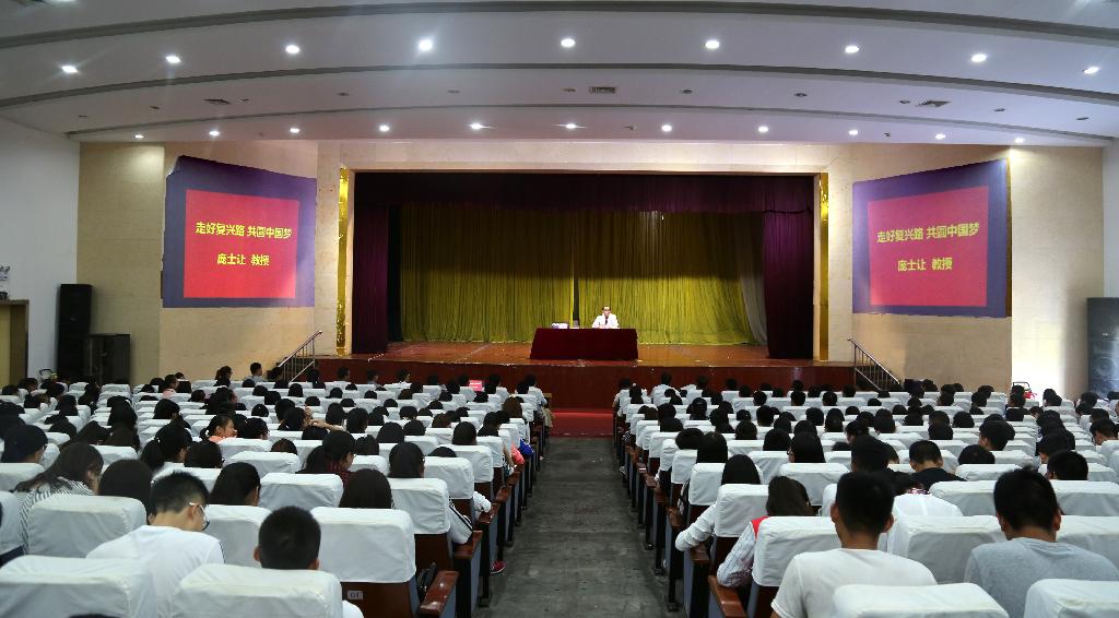 9月21日下午,爱国主义教育专家、中华爱国工程联合会理事庞士让教授在我校江南校区大礼堂为我校师生做“走好复兴路,共圆中国梦”专题报告,江南校区600余名学生和辅导员老师聆听了报告。学校党委书记王国良出席了报告会,会议由学校党委副书记胡鸿晓主持。