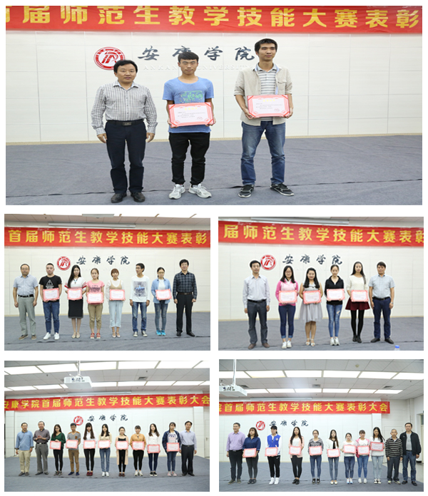 会上,播放了大赛各个环节的精彩视频,供参会师生观摩学习。随后,本次竞赛承办单位政社学院党总支书记冯丰收代表学校,宣读了《关于对安康学院首届师范生教学技能大赛获奖选手表彰奖励的决定》文件,学校领导及教务处、二级学院参会嘉宾为获奖选手颁奖。