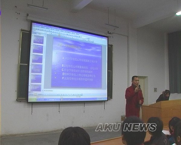 为进一步落实教育部和省教育厅关于加强高等学校大学生心理健康教育工作一系列重要文件精神,完善学院―院(系)―班级三级心理健康教育体系,2009年12月26日上午,学院在西校区8403教室举办了2009级心理卫生员培训会,学生处邀请安康学院心理咨询师纪宏耀老师作辅导讲座,2009级各班心理卫生员、“阳光心理协会”全体会员以及2009级辅导员近300人参加了培训。培训会由学生处副处长车静主持。