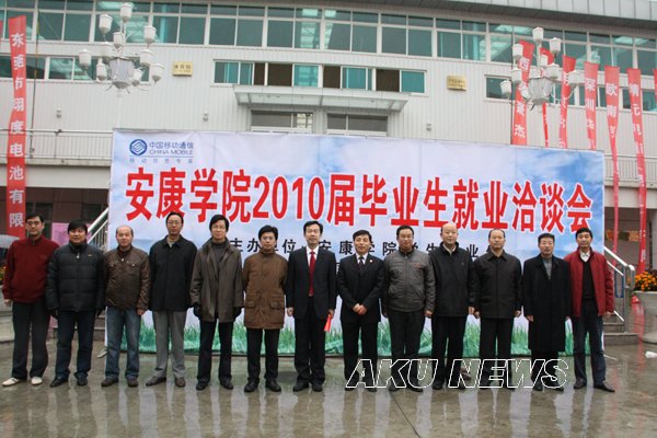 “安康学院2010届毕业生就业洽谈会”于2009年11月15日在学院东校区体育馆举行。学院党委副书记胡鸿晓、党委副书记纪委书记闵小平、副院长陈刚、副院长向纪明等学院领导亲临现场指导洽谈会工作,并与用人单位和应聘学生进行了亲切交谈。