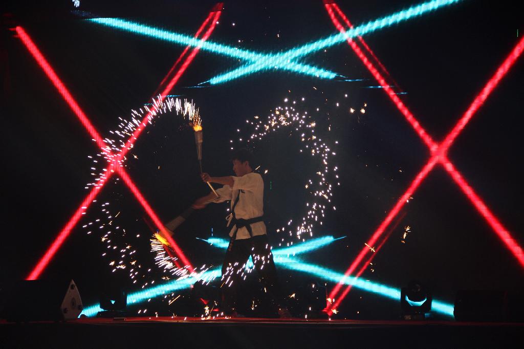 晚会在我省16所兄弟院校和我校12个二级学院的祝福视频中,拉开了帷幕。我校安塞腰鼓协会、歌友社、舞蹈社、瑜伽社等社团表演的节目,不仅展现了社员澎湃的青春活力,更展现了我校社团的蓬勃发展。民俗乐队、UN乐队、武术队的精湛表演,引来阵阵喝彩,体现出我校学生扎实的专业功底与艺术素养。最后,晚会在我校艺术学院田川老师深情演唱的《我爱你中国》中圆满落幕。