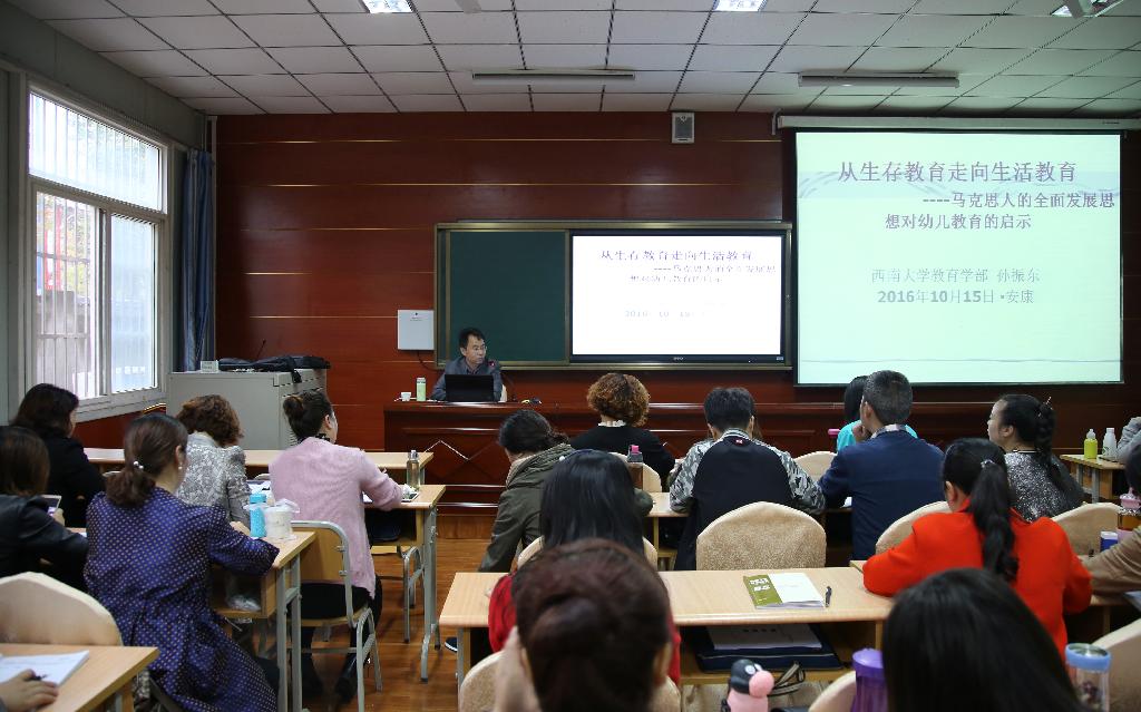 2016年10月10日——10月24日,由陕西省教育厅主办、学校继续教育学院承办的 “幼师国培(2016)”——陕西省乡村幼儿园园长培训项目顺利实施。为了提高参训学员水平,高质量完成培训项目,学校先后邀请江苏师范大学学前教育首席教授、张新立博士,西南大学李姗泽、孙振东3位专家教授到校为71名参训的乡村幼儿园园长、我校教育学院部分师生和城区幼儿园教师代表作了3场高水平学术报告。