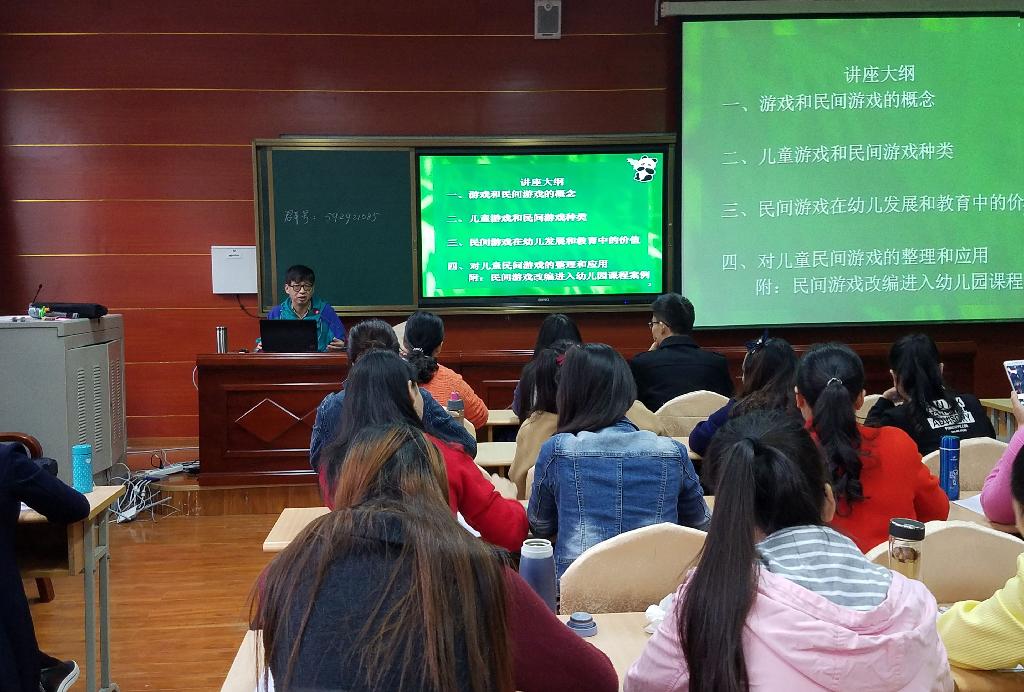 张新立教授的“民间游戏资源在幼儿教育中的价值及其作用”专题讲座,从游戏和民间游戏的概念、儿童游戏和民间游戏的种类、民间游戏在幼儿发展和教育中的价值以及对儿童民间游戏的整理和应用四个方面出发,结合教学案例深入浅出地阐述了游戏在幼儿教育中的重要性。张教授幽默诙谐、学贯中西、旁征博引,受到学员的一致好评,让大家更深刻地意识到游戏对幼儿教育的重要性。李姗泽教授围绕“民间文化资源在幼儿教育中的价值及其作用”这一报告主题,从“民间文化”基本概念入手,在与西方文艺绘画作品、外国游戏的对比中凸显民间文化对幼儿教育的重要性,揭示了民间文化在提供儿童多元化文化选择方面的重要价值。孙振东教授的“马克思人的全面发展思想对幼儿教育的启示”学术报告,以我国幼儿园数量、幼儿数量、在校幼儿数量、教职工总数以及幼儿毛入学率为依据,运用统计原理,分析了全国学前教育概况,分析了生存教育到生活教育的教育发展过程;从教师外在形象和内在素养对学前儿童成长有着重要影响,引入并论证了马克思主义人的全面发展学说基本要点,倡导全体学员要研究关注马克思关于人的全面发展学说对学前教育发展的重要作用,争作一名优秀的幼儿教师。