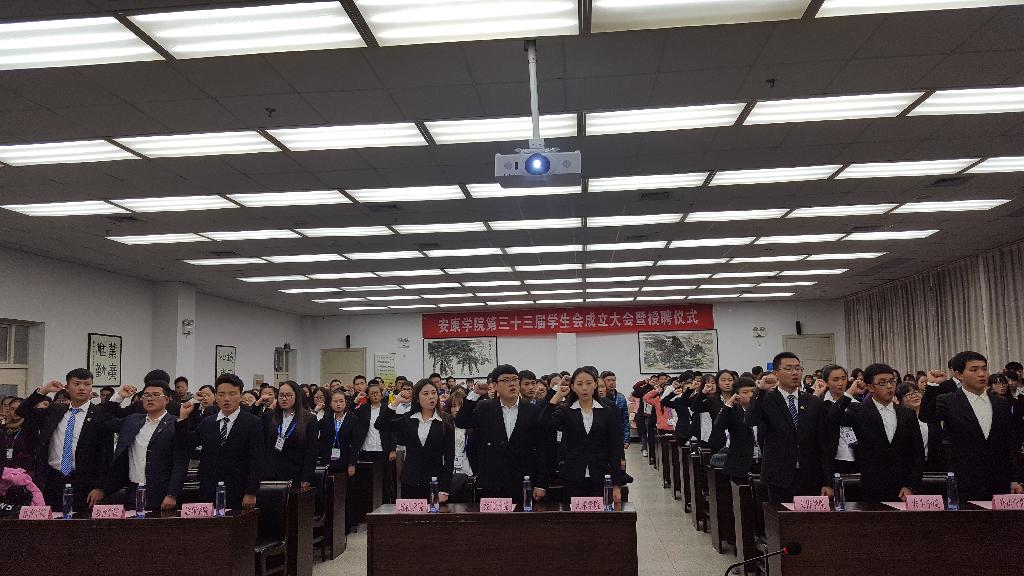 大会伊始,第三十二届学生会主席团代表鄢宇鼎和第三十三届学生会主席李昶分别向大会做了工作总结陈述和工作计划汇报。随后,胡鸿晓为本届学生会主席团颁发了聘书,学生会副秘书长吕航宣读了《安康学院学生会章程》,学生会办公室主任段宇航带领全体学生会成员进行了宣誓,李光梓向学生会主席李昶授予学生会会旗,宣告我校第三十三届学生会正式成立。