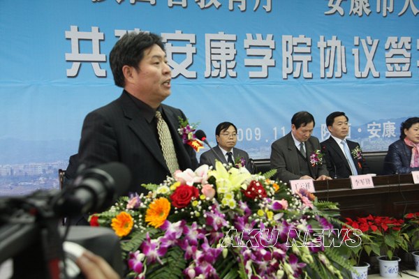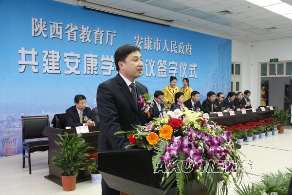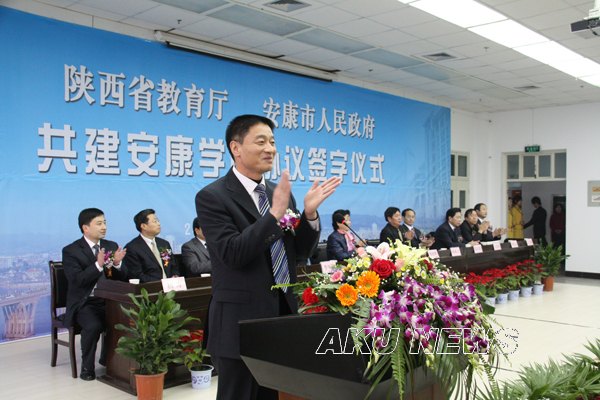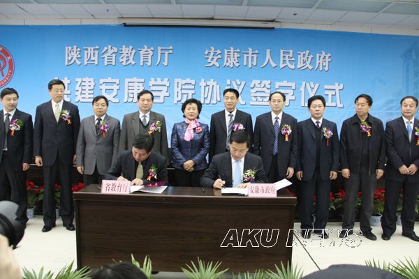 省教育厅厅长杨希文、安康市市长方玮峰代表共建双方在协议上签字。按照共建协议,省教育厅将支持安康学院的发展建设,在省级重点学科、特色专业、精品课程建设方面、科学研究、对外合作交流、新校区建设等方面给予支持。安康市政府将在安康学院新校区建设、重大科研项目申报、共建科研基地等方面继续给予支持。三方共同努力把安康学院建成陕南地区人才培养、科学研究和智力保障的基地。