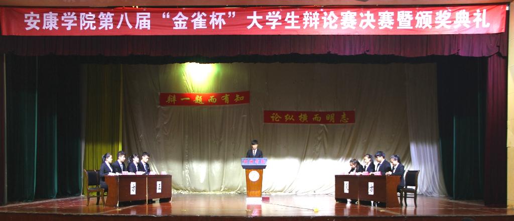 11月28日晚,我校第八届“金雀杯”大学生辩论赛暨颁奖典礼在江南校区大礼堂隆重举行。我校张纪生、符绳发、王开忠、吕仙利、黄娟等5位老师担任决赛评委。相关部门负责同志及我校辩论爱好者共600余人参加了活动。