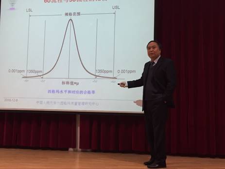 何晓群结合工作经历,通过一连串生动的例子来说明质量管理的重要性,并以通用电气(GE)公司为例,系统阐述了六西格玛管理的理论知识及其应用情况。何教授用信手拈来的生活中的事例,准确阐述了观点,语言风趣幽默,会场不时响起阵阵掌声。
