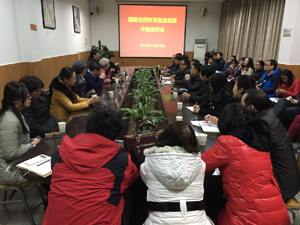 为了提高我校国家自然科学基金项目申报质量和水平,12月26日晚,我校在江南校区第一会议室召开2017年国家自然科学基金项目申报座谈会,邀请国家重大研究计划首席科学家、复旦大学赵世民教授、王红艳教授,复旦大学张峰教授,国家杰青、复旦大学余发星教授及陶无凡、郑煜芳、杜文琪等10余名专家教授来我校指导国家自然科学基金项目申报。各二级学院分管科研副院长,2017年计划申报国家基金项目的教师、博士及科研处全体工作人员参加了座谈会。会议由向纪明副校长主持。