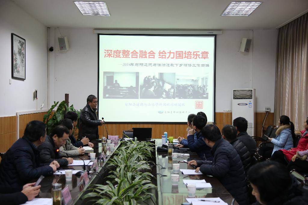 近日,由我校承担的“国培计划(2016)——陕西省中小学(幼儿园)教师培训团队置换脱产研修项目及送教下乡项目”工作总结暨表彰会在我校江南校区第一会议室召开。学校副校长钟生海,继续教育学院院长谯延富、党总支书记王平,旬阳县师训教研中心主任付功强、副主任张先波、师训部主任李博,西乡县教研室主任王国林、副主任梁厚钦,以及两县相关学校校长、培训学员、上课教师代表等参加了会议。会议由王平主持。
