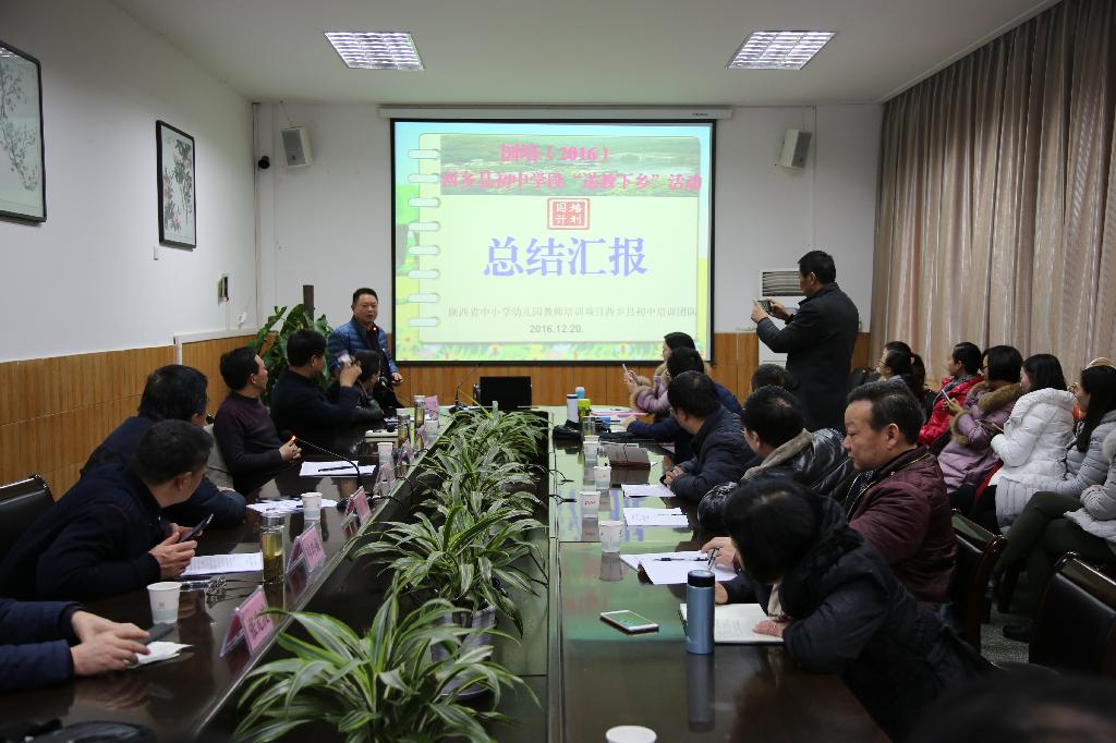 会上,承担“国培计划(2016)——陕西省中小学(幼儿园)教师培训团队置换脱产研修项目及送教下乡项目”的旬阳、西乡两县6位学员代表总结交流了置换脱产研修及送教下乡的工作经验,分享了置换脱产研修及送教下乡工作中的收获和感想,交流、分析研讨了置换脱产研修及送教下乡工作中存在的问题和困难,提出了一系列富有建设性、针对性的建议和意见。