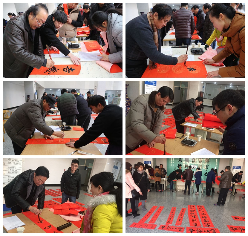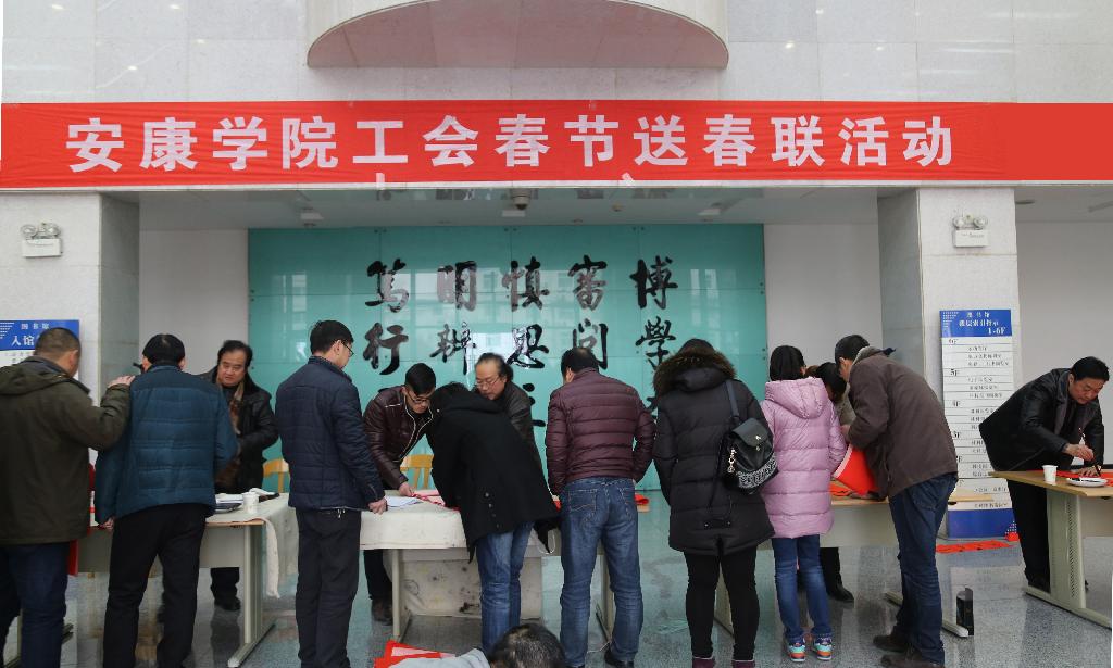 为弘扬民族传统文化,营造节日欢庆氛围, 2017年1月15日,由校工会主办,陕南书画院承办的为教职工义务书写春联活动在江南校区图书馆一楼举行。学校副校长向纪明,工会专职副主席王斌和陕南书画院老师章长青、杨润波、张富华、张纪生、梅向东等参加了活动。