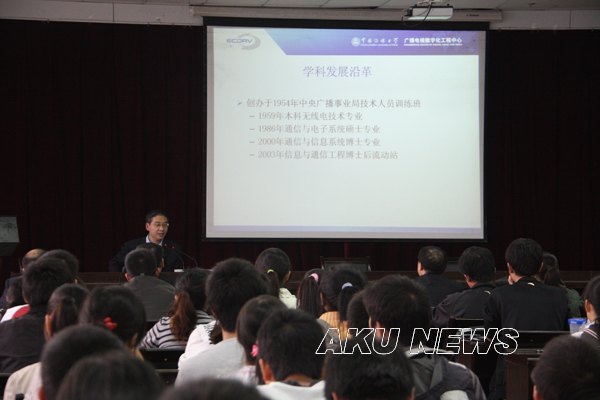 吕锐还应邀在我院图书馆六楼报告厅做了《数字声音广播的学科建设与发展》的学术报告。吕锐向大家介绍了数字声音广播特色科学方向和信息科学建设与发展等方面的知识,并就新时期媒体科学发展的思路、依托优势科学方向展开高水平科学研究、积极参与国家和行业的重大技术标准研究与制定、无线传媒模式以及DRM广播技术等等前沿研究方向向大家作了介绍。他的报告代表前沿领域,知识丰富,充满了新理念,让我院师生对当今数字媒体技术的发展状况及发展前景有了直观的理解。