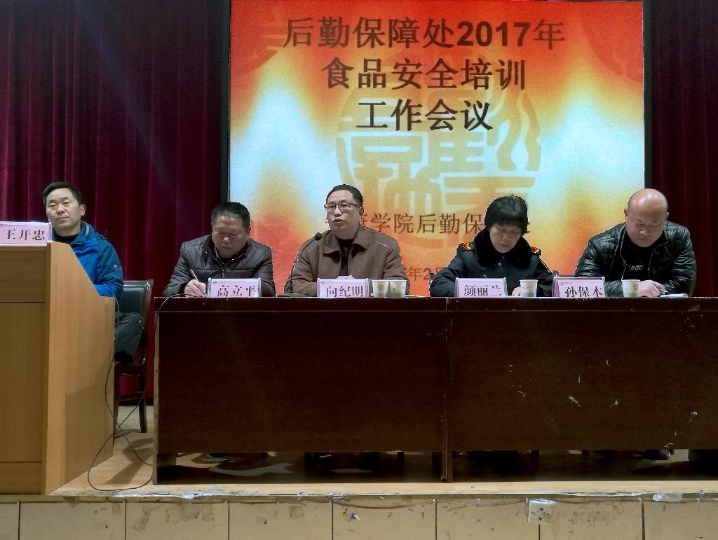 近日,学校在江南校区1号楼报告厅举行2017年度食品安全员培训会,汉滨区市场监督管理局餐饮监管股颜丽兰应邀做培训讲座,副校长向纪明、后勤保障处领导班子及各科室主任、饮食服务中心全体工作人员以及两校区食堂员工170余人参加了培训。培训会由后勤保障处副处长王开忠主持。