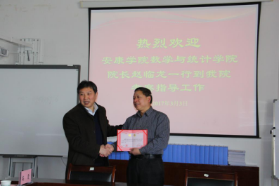 近日,我校数学与统计学院院长赵临龙教授被陕西理工大学聘为兼职硕士研究生导师,并带领数学系主任成波副教授、实验教学中心主任刘铁副教授,前往陕西理工大学数学与计算机科学学院考察研究生教育办学情况。