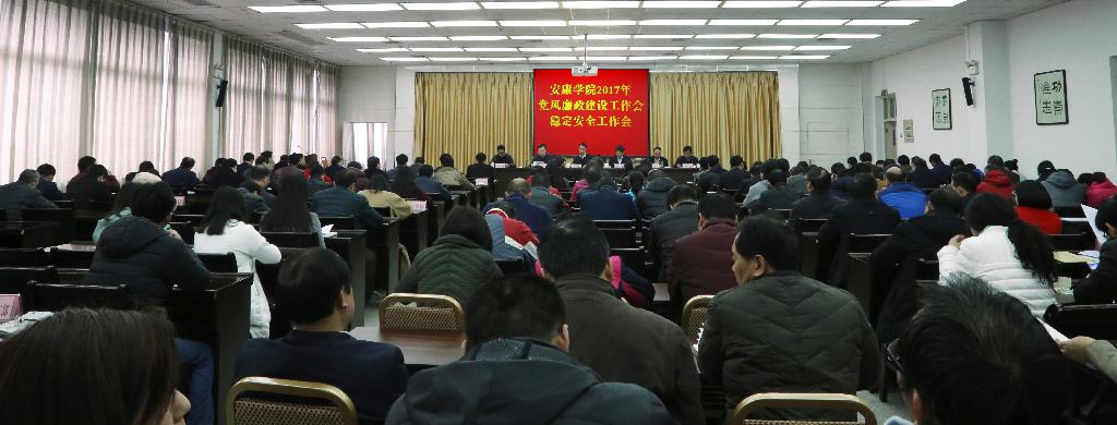 下午,安康学院2017年党风廉政建设暨稳定安全工作会议在江南校区图书馆六楼报告厅召开。学校领导班子全体成员,学校科级及以上领导干部,各党总支、机关直属党支部纪检委员,2016年稳定安全工作先进集体、先进个人代表等200余人参加了会议。党委书记王国良在会上做了要求讲话。会议由校长陈刚主持。