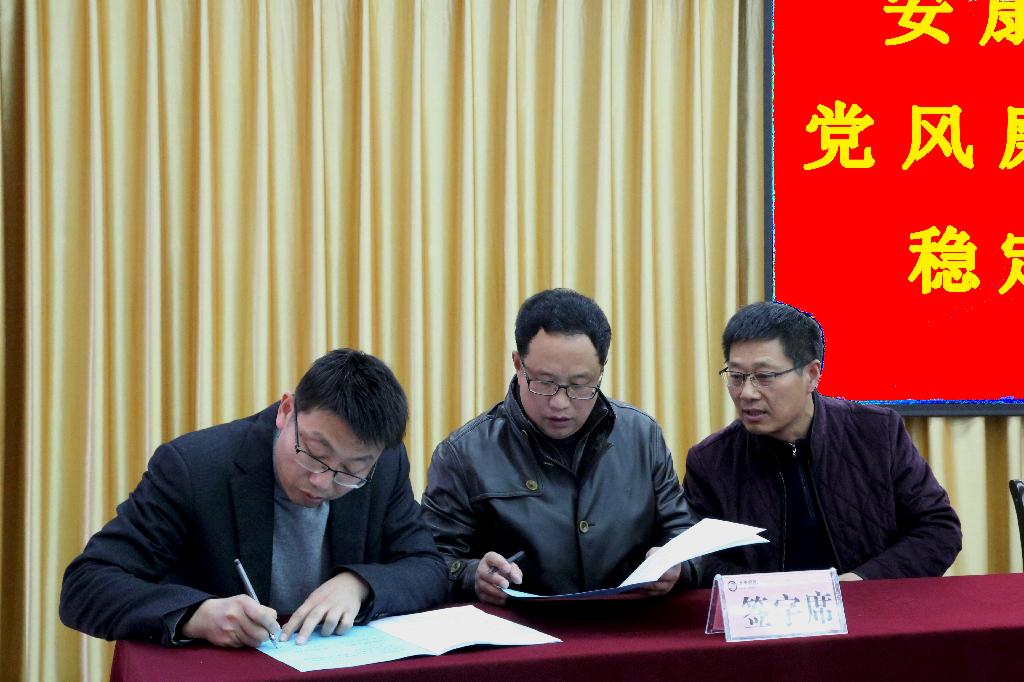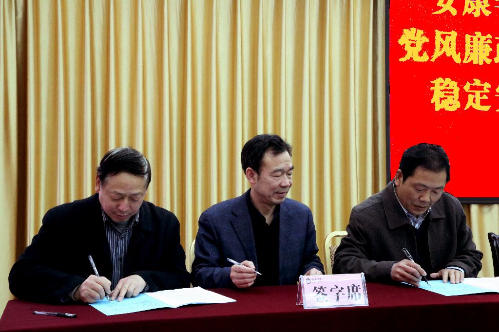 党委书记王国良、校长陈刚代表学校党政分别与领导班子成员签订了《安康学院2017年度党风廉政建设责任书》;闵小平、杨行玉、向纪明、钟生海分别与联系的二级学院党政负责同志和相关职能部门代表签订了《安康学院2017年度党风廉政建设责任书》。