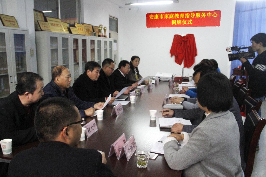 安康学院--安康市妇联联合成立的“安康市家庭教育指导服务中心”校地合作平台揭牌仪式于2017年3月22日在安康学院教育学院举行。安康市妇联主席刘珺、副主席唐锦,安康学院副校长向纪明,学校党委委员、科研处处长刘强,科研处副处长王刚,教育学院院长黄路阳、总支书记屈咏梅以及教育学院20多名教师参加了揭牌仪式。会议由屈咏梅主持,我校副校长向纪明和安康市妇联主席刘珺为“安康市家庭教育指导服务中心”揭牌。