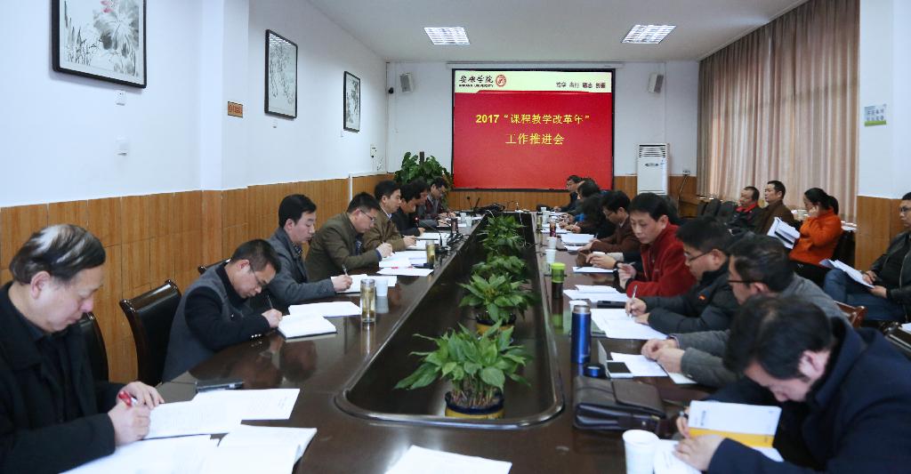 为了推进我校课程教学改革,提升教学质量,进一步明确“课程教学改革年”的目标、任务与措施,2017年3月24日,学校在江南校区第一会议室召开了2017年“课程教学改革年”工作推进会。校长陈刚、副校长钟生海、教务处负责同志和各二级学院院长、分管教学副院长参加了会议,会议由副校长钟生海主持。