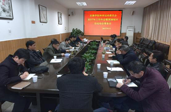 近日,我校体育运动委员会2017年工作年会暨第39届田径运动会筹备会议在江南校区第一会议室召开。学校体育运动委员全体成员参加了会议。会议由副校长钟生海主持。