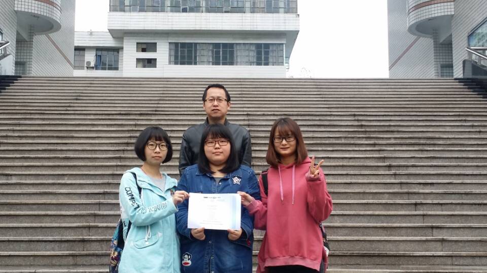 (左起第一排依次为参赛队员:周刘菁、王瑶、赵楠;第二排为指导教师刘铁)