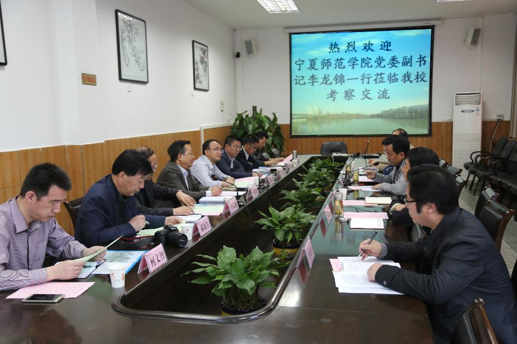 4月13日下午,宁夏师范学院党委副书记李龙锦携该校相关职能部门及院系负责人一行8人围绕转型发展的核心主题来我校考察交流。副校长钟生海带领对应部门负责人与来访客人在江南校区第一会议室召开了交流座谈会。