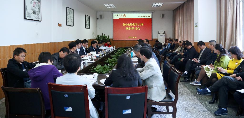4月14日下午,我校“2016级教学大纲编制研讨会”在第一会议室召开,副校长钟生海,办学顾问李国庆、熊正英,教务处负责同志、各二级学院教学副院长(教学部主任)、系主任、教研室主任等40余人参加了会议。会议由学校党委委员、教务处处长余谦主持。