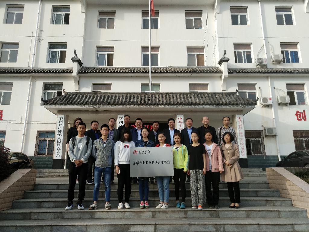 考察期间,校长陈刚与平利县委书记郑晓东进行了热情交流,先后考察了广佛镇茶叶基地及安康市汉水女娲茶业有限公司,看望了在安康市汉水女娲茶业有限公司进行实训实习的我校茶学专业2015级学生并合影留念。