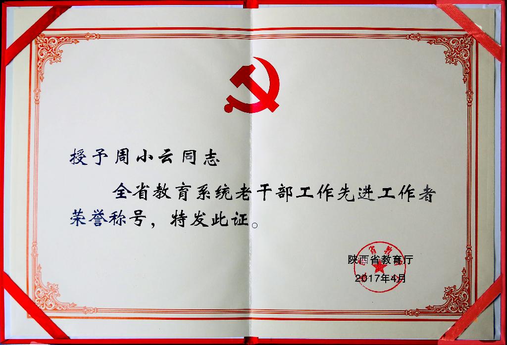 5月4日上午,陕西省教育系统老干部工作暨“双先”表彰大会在陕西省教育厅机关第一会议室召开。我校离退休工作处管理工作科科长周小云荣获“陕西省老干部工作系统先进工作者”称号并受表彰奖励。