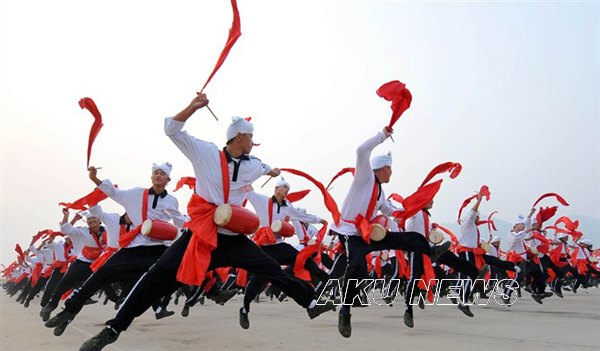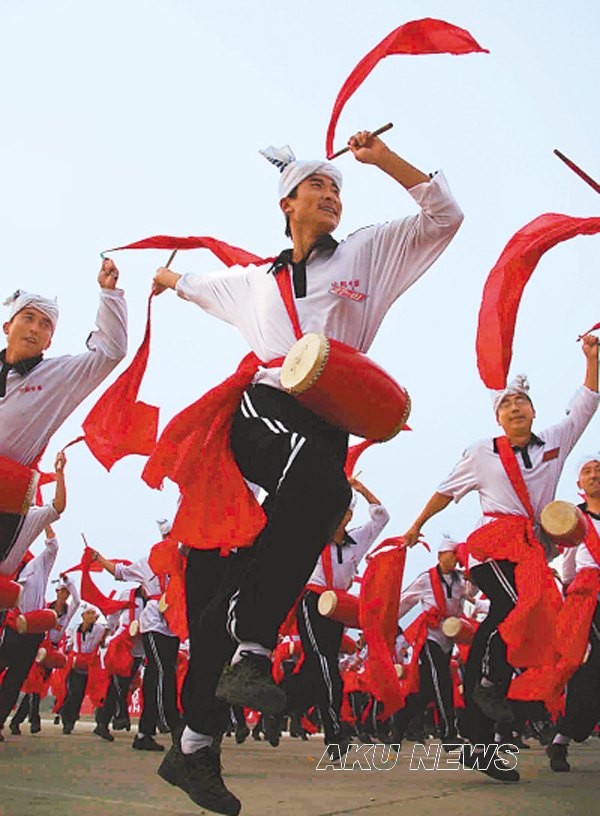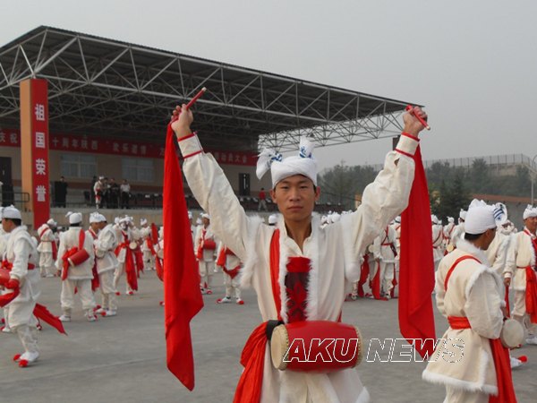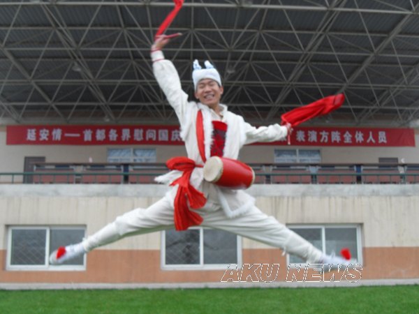 今年在首都举行的新中国成立60周年庆典活动中,我省安塞县承担千人腰鼓队的表演任务。我院体育系07级1班张艳青同学、化学化工系08级地理教育专业李双喜同学被安塞县文化局特邀担任腰鼓队队员,张艳青同学还兼任教练员职务。体育系、化学化工系积极支持他们参加此项活动,并提出了希望和要求。张艳青、李双喜同学作为腰鼓方阵的排头队员,刻苦训练,努力工作,与腰鼓方阵的队员们一道在10月1日的天安门前给世界奉献了一出精彩的表演。