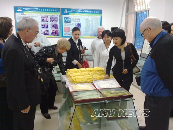 在陈少默纪念馆,王兴林向美国友人介绍了我院的基本情况和陈少默作品风格及艺术价值。在艺术系进行学术交流时,美国友人介绍了美国的音乐简史和几位歌手的基本情况,并现场演唱了5首美国歌曲。在参观陕西省蚕桑重点实验室时,工作人员就彩茧的培育情况和发展前景向参观人员作了介绍。随后,美国友人一行在王兴林等人的陪同下,来到我院茶叶鉴定室,双方就相关事宜进行了热烈而广泛的交流,并互赠了礼物。