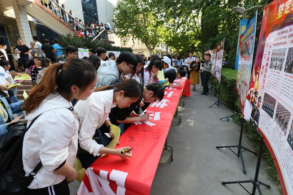 报告会后进行了“百校万人签名”与征兵宣传咨询活动,现场发放各类征兵宣传资料6000余份。在活动现场,李业平将军及军分区领导与大学生进行了互动交流,解答相关政策,鼓励广大有志青年积极响应祖国召唤,携笔从戎,踊跃报名参军,把远大的爱国之志变成笃实的爱国之行。