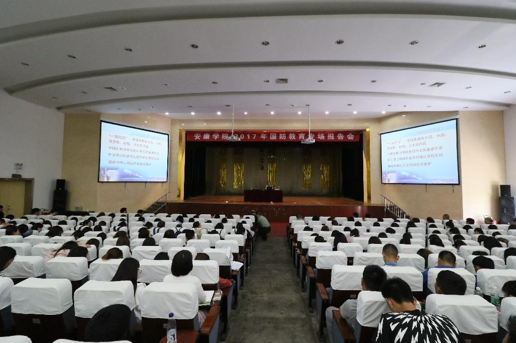 5月9日下午,在我校江南校区大礼堂举办了“2017年国防教育专场报告会暨大学生征兵宣传活动”。本次活动由安康学院、安康军分区政治部、汉滨区人民武装部联合举办。