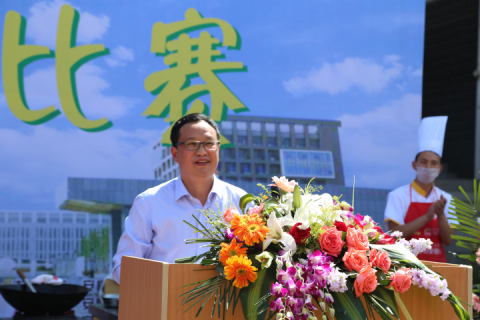 副校长向纪明教授致词,他强调饮食服务是学校后勤保障工作的重点,吃得安全、吃得营养、吃得健康是全校一万多名师生共同的愿望,也是各级领导和管理部门长期关注的重点工作。我校师生来自全国各地,饮食习惯各异,怎样才能在做好饮食保障的基础上做出不同风味的饭菜,更好地满足各地师生的就餐需求,需要管理部门和食堂全体员工的长期探索和努力。举办厨艺比赛,给食堂师傅们搭建了一个展示烹饪才艺、互相学习、共同提高的平台。希望各参赛食堂和活动组织部门有效利用该项活动,进一步提高饮食服务质量、推动我校饮食服务健康发展。同时为丰富校园文化生活、弘扬饮食文化做出应有的贡献!