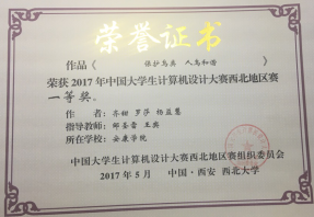5月13日~14日,2017年(第十届)全国大学生计算机设计大赛西北地区决赛在西北大学隆重举行。本次决赛共有来自西北5个省区的559个代表队参加,决赛选手2000余人。经过作品展示、现场答辩和专家评议,我校推选的7个参赛作品全部获奖,其中获一等奖2项,二等奖2项,获三等奖3项,获奖项数和获奖等级再创新高。