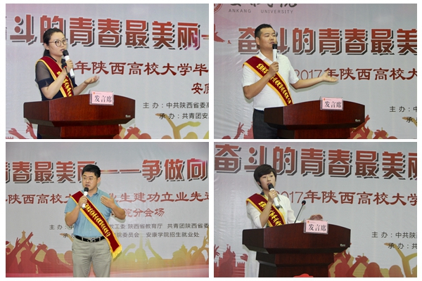 白一彤、何贵龙、邢娟、李晓波等四位青年榜样分别分享了自己的奋斗故事和自身经验。我校文传院2010届毕业生白一彤首先分享了她的成长历程,现为榆林市清涧县高杰村镇副镇长的她,获得过多次殊荣并且成绩优异。她讲述了自己的工作经历,带领着村民们修路修戏楼凿井,过程虽然很艰辛,但她遇难而上,最终还是得到了村民们的支持,在认真工作中,培养了坚定的人生目标,那就是为人民服务,勇往直前。