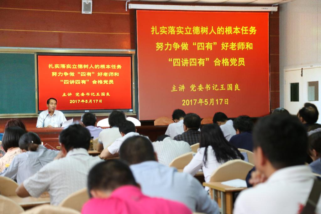 2017年5月17日,学校党委书记王国良为文学与传媒学院、经济与管理学院、机关直属二党支部的全体党员讲了题为《扎实落实立德树人的根本任务,努力争做“四有”好老师和“四讲四有”合格党员》的党课。本次党课由党委委员、党委组织部部长(党校副校长)屈险峰主持。