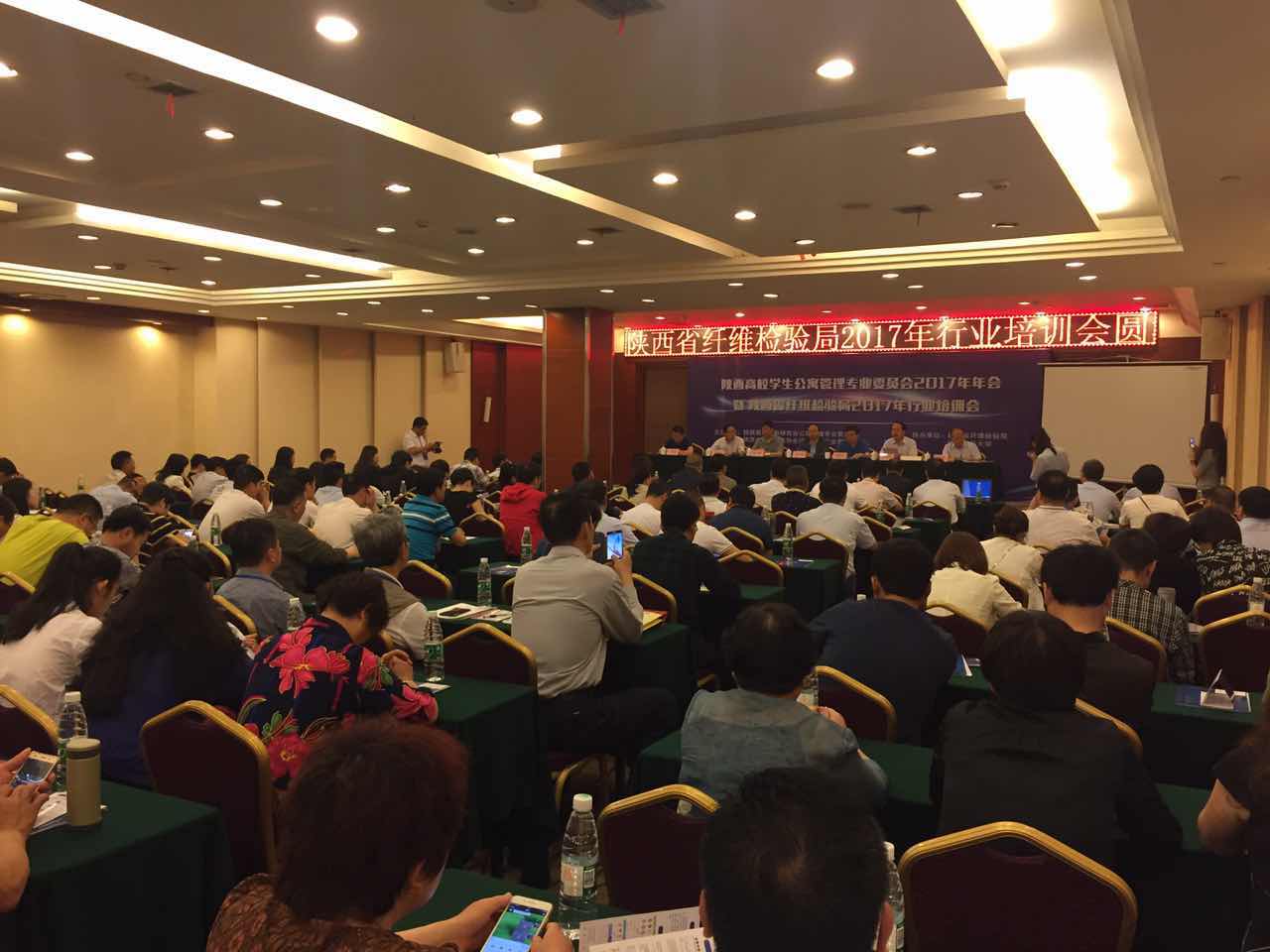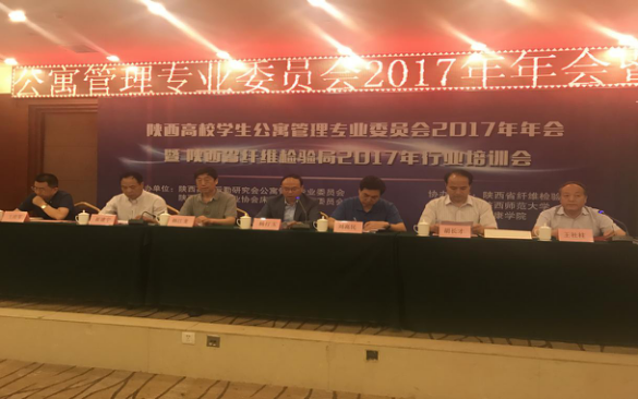 省高校寓专会主任胡长才做了2017年陕西高校学生公寓管理专业委员会工作报告。陕西省纤维检验局副局长韩江龙代表纤维检验局从加强学生公寓纤维品管理,强化质量检测,保证学生身心健康提出意见。