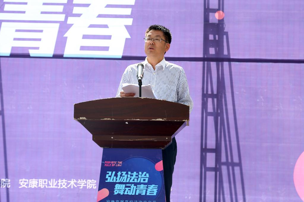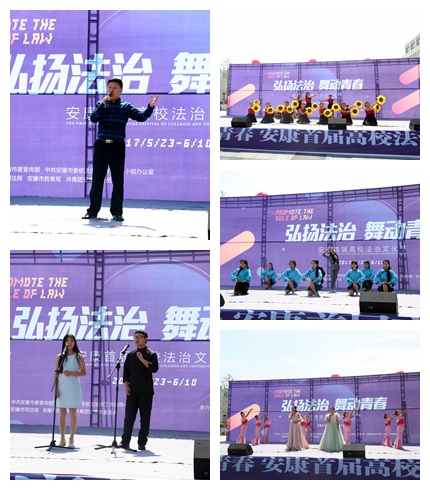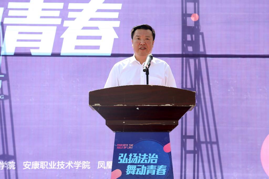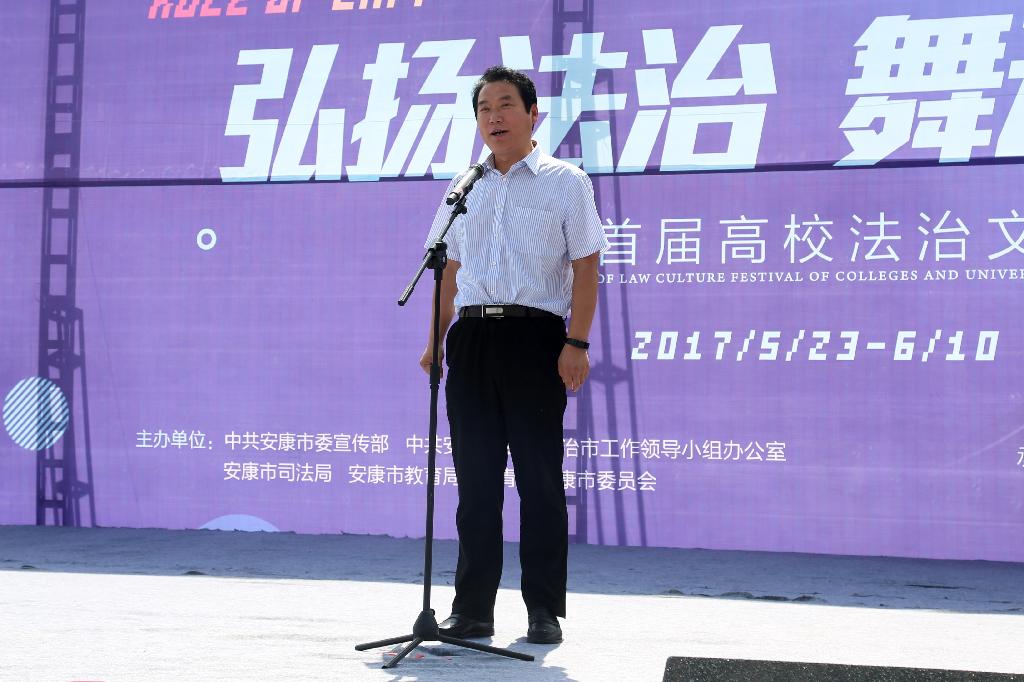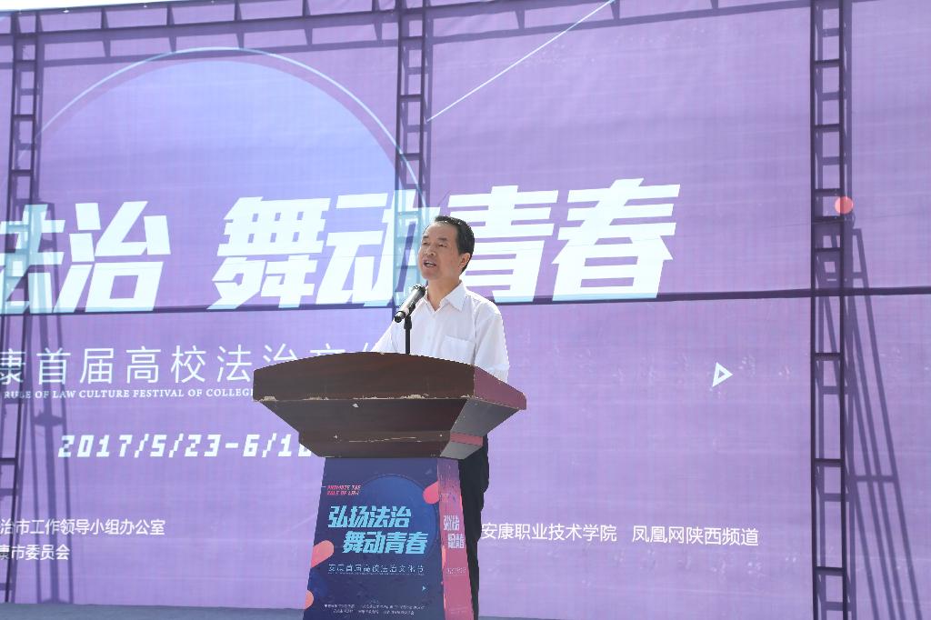 5月23日上午,由市委宣传部、市依法治市办、市司法局、市教育局、团市委联合主办,安康学院、安康职业技术学院和凤凰网陕西频道共同承办的安康首届高校法治文化节“法律进校园”普法宣传活动启动仪式在安康学院江北校区逸夫科技楼前广场隆重举行。安康市委常委、常务副市长、市委依法治市工作领导小组组长赵俊民宣布文化节启动,市人大常委会副主任、市委依法治市工作领导小组副组长邹俊杰讲话,安康学院党委书记王国良致辞;市政协副主席吴平,安康职业技术学院党委书记唐军,安康学院副校长杨行玉,市依法治市办公室主任、市司法局局长张延平等领导出席启动仪式。市依法治市领导小组各成员单位负责人,各县区司法局局长,安康学院、安康职业技术学院师生代表共计1000余人参加启动仪式并观看法治文艺演出。启动仪式由安康市副市长、市委依法治市工作领导小组副组长杨尚伟主持。
