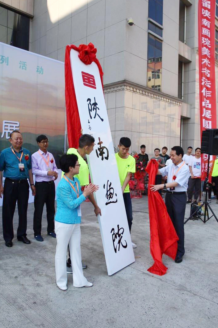 安康市副市长孙矿玲、安康学院党委书记王国良为陕南画院揭牌,安康市文联副主席兼秘书长喻斌同志主持开幕式。安康市人大常委会副主任、市委组织部常务副部长邹俊杰宣布首届陕南画院美术书法作品展开幕,安康学院副校长向纪明代表学校致辞,陕南画院院长章长青为画院成立致辞。
