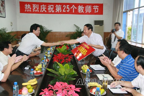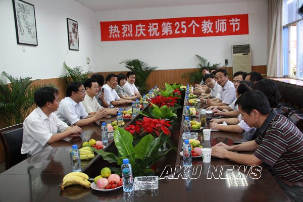 9月10 日是我国第25个教师节。上午9点,安康市委副书记崔光华,市委常委、副市长吴德珠,市人大常委会副主任马晓芳,市政协副主席陈安生,市教育局局长杜科持,市委副秘书长唐军等一行来我院,向辛勤工作在一线的教师致以节日的问候和诚挚的祝福,并送来了慰问金。