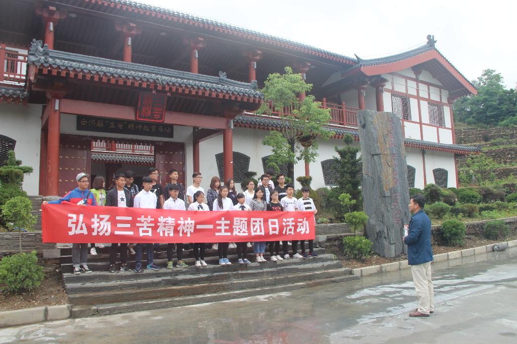 活动最后,与会师生前往白河县三苦精神纪念馆,参观学习领会白河县人民“领导苦抓、干部苦帮、群众苦干”的三苦精神,并开展了“弘扬三苦精神”主题团日活动;白河县仓上中学校长为师生们耐心讲解了三苦精神,他讲到“白河县曾经是一个一直被很多人认为不适合人类生产生活的石坎坎,然而事实并非如此,在白河县领导干部人民群众的共同努力下,一代一代传承‘三苦精神’,使得白河县实现了从石坎坎到金碗碗的巨大转变。