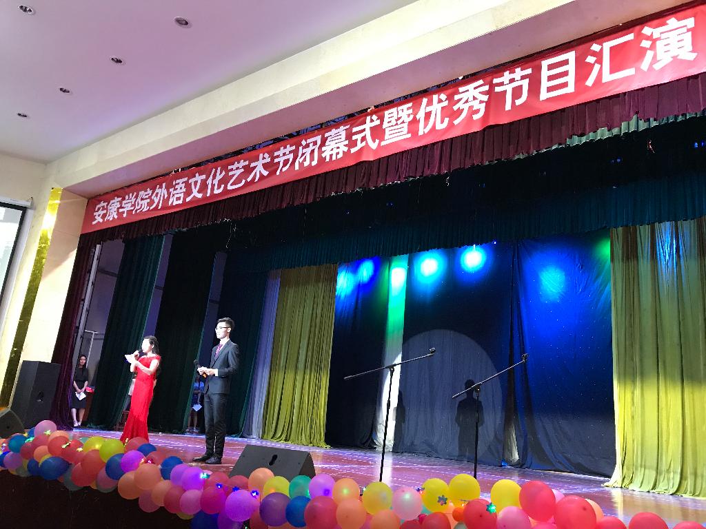6月9日晚七点,安康学院外语文化艺术节闭幕式暨优秀节目汇演在江南校区大礼堂隆重举行。出席本次闭幕式的有学校办学顾问党天才教授、学校教学督导、教务处副处长张纪生、部分二级学院书记及外语学院领导班子、教师及学校各专业八百余名学生。