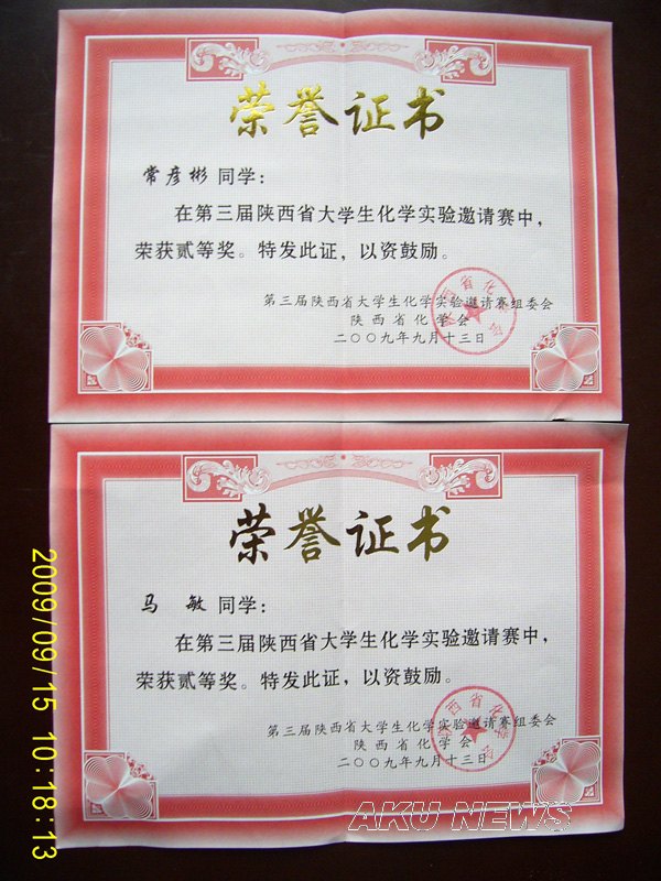 我院代表队首次参加陕西省大学生化学实验竞赛取得佳绩
